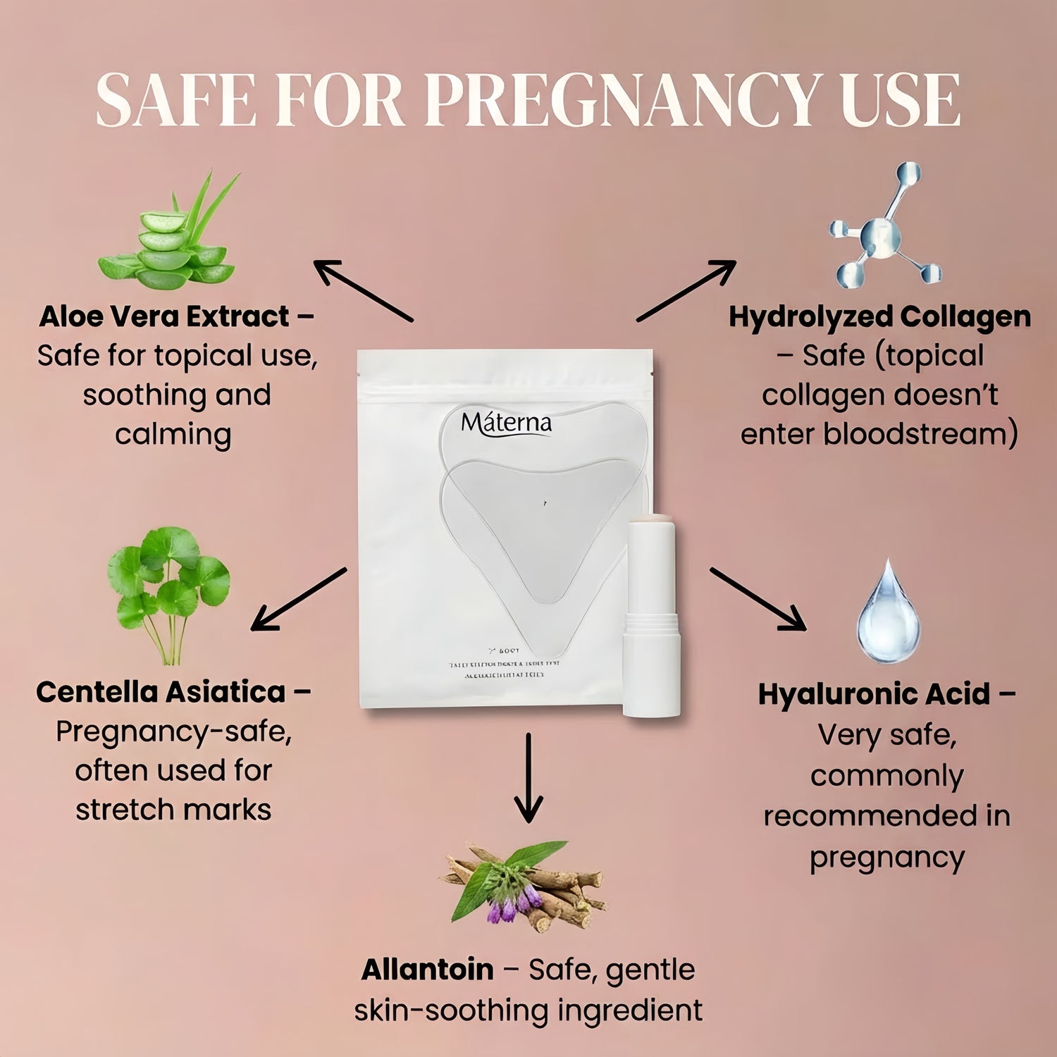 "For expectant mothers looking to support their skin as it stretches, I often recommend medical-grade silicone patches as part of a preventative routine. High-quality, single-ingredient silicone helps maintain hydration and skin flexibility during pregnancy. Products like Máterna's pregnancy silicone patches are made with 100% medical-grade silicone, which is gentle, non-invasive, and suitable for sensitive, changing skin when used as directed."